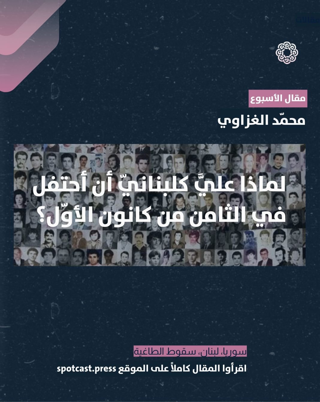 أحتفل لأنني ابن طائفة قضى شبابها أيامهم الأخيرة في صيدنايا، أو في المقابر الجماعية، أو على لائحة المطلوبين. أحتفل لأنني إنسان يعرف معنى الإنسانية وسمع روايات الناجيات من هناك. أحتفل لأنني لبناني قبل كل شيء، ولأنني عاصرت ووالديّ حقبة مظلمة امتدت لعقود، جعلت لسوريا الكلمة الفصل في القرار اللبناني.